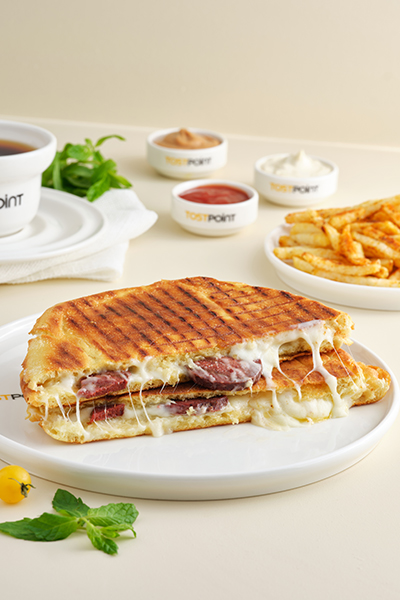 Özel Tost Point Ekmeği, Sucuk, Salam, Sosis, Mozzarella Peyniri, Mısır, Turşu, Ketçap, Mayonez.