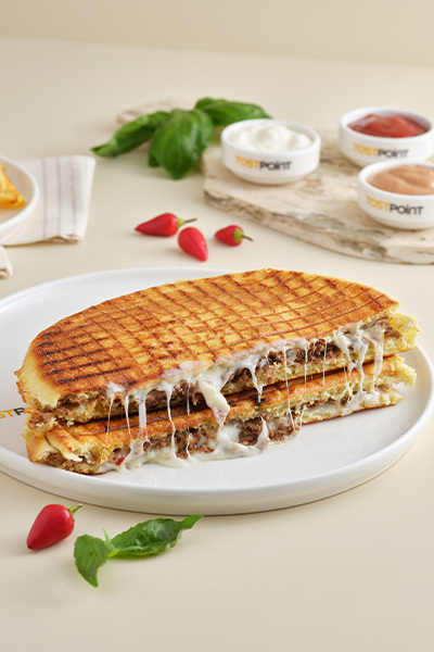 Özel Tost Point Bazlama Ekmeği, Mozzarella, Pastırma.